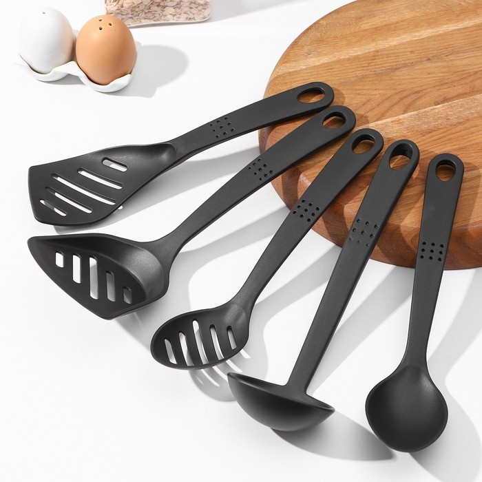 Набор кухонных принадлежностей Доляна «Точки», 5 предметов, цвет чёрный