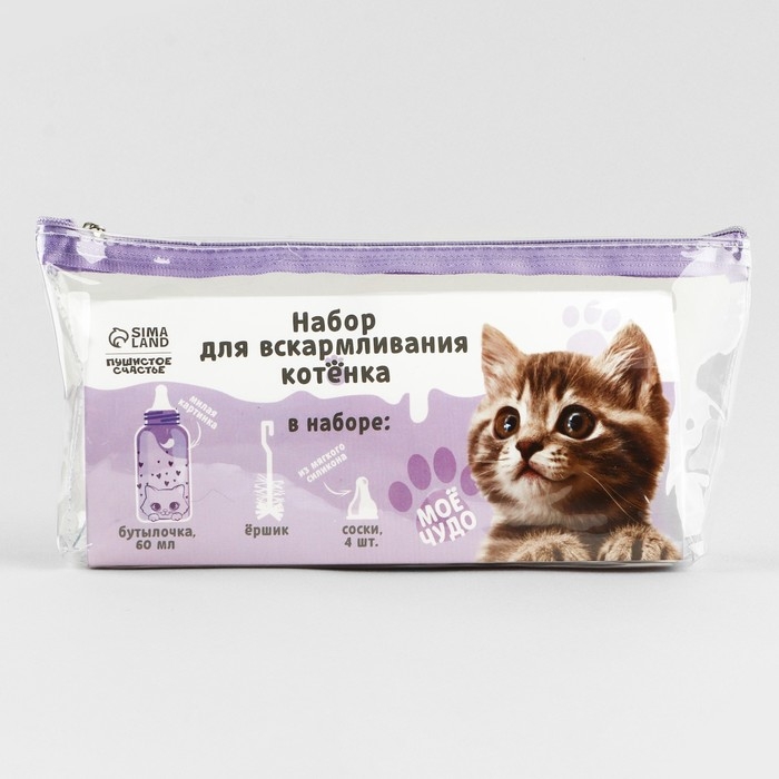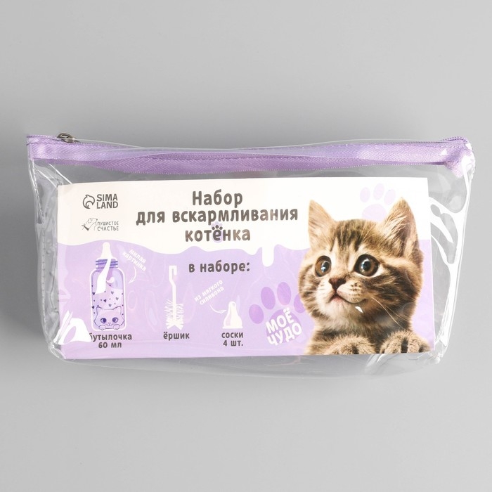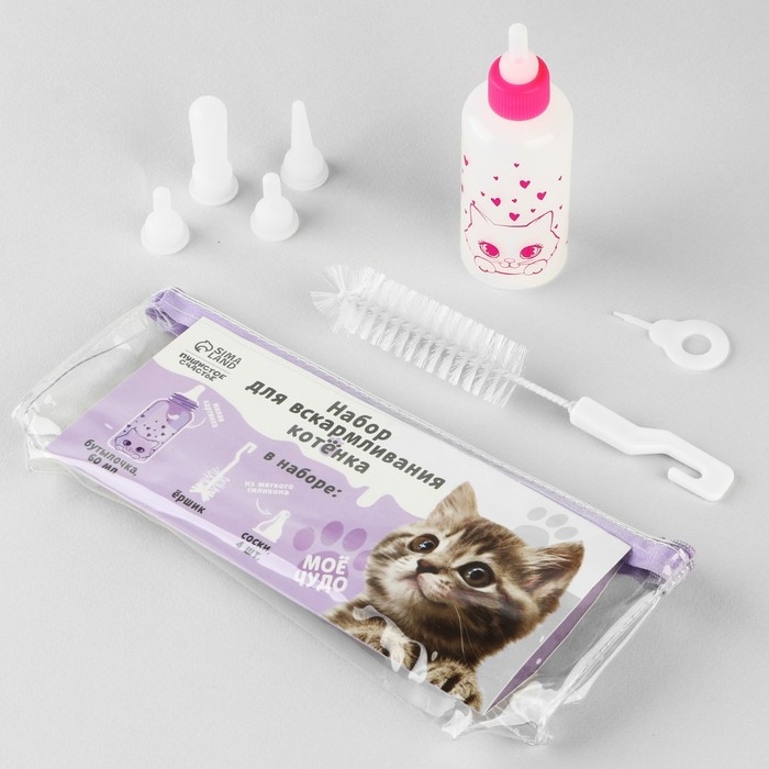 Набор для вскармливания «Пушистое счастье» для котят, 60 мл, с 4 сосками и ёршиком