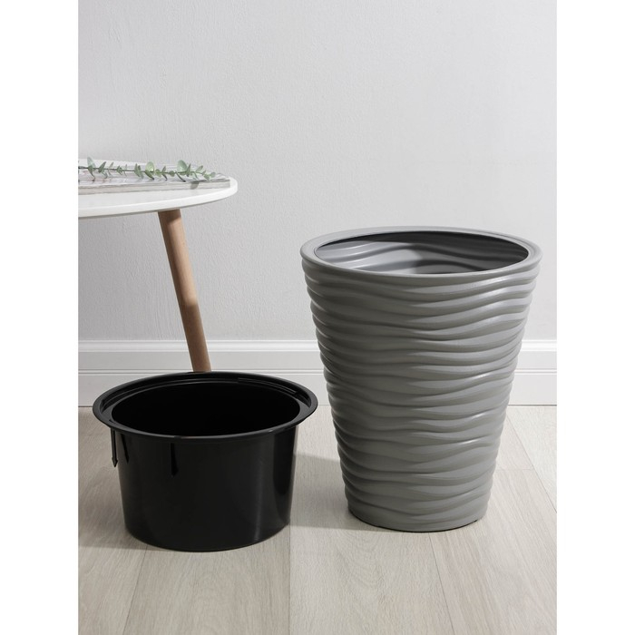 Кашпо для цветов со вставкой «Дюна», 19,5 л, цвет серый