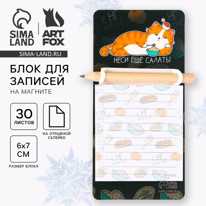 Новый год. Блок для записей с карандашом на магните «Неси еще салаты»