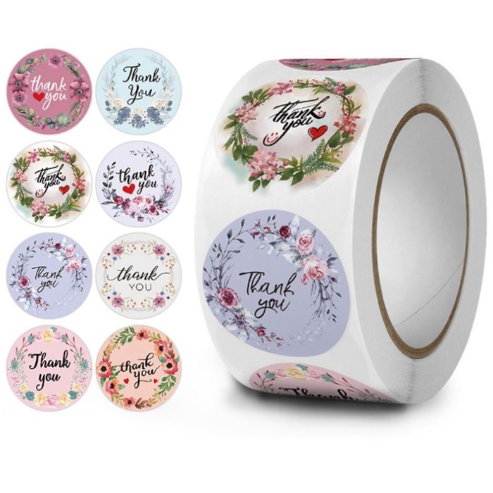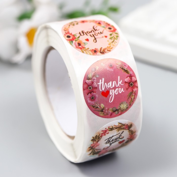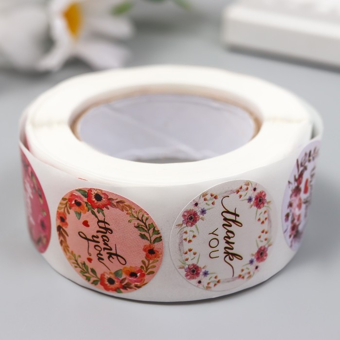 Наклейка бумага "Цветочные" d=2,5 см 500 шт в рулоне 3х6,5х6,5 см