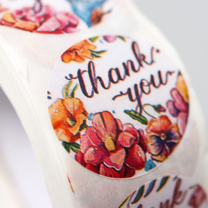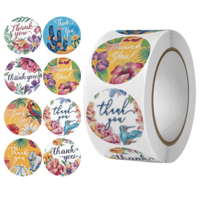 Наклейка бумага "Экзотика. Цветы" d=2,5 см 500 шт в рулоне 3х6,5х6,5 см