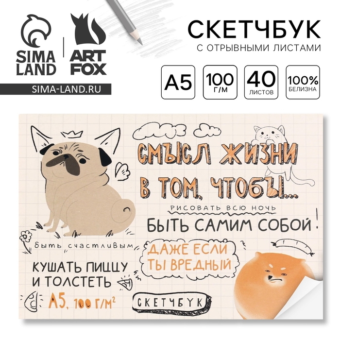 Скетчбук с отрывными листами «Собаки» А5, 40 листов, мягкая обложка, плотность бумаги 100 гр