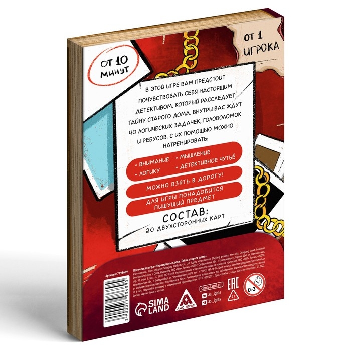 Логическая игра «Нераскрытые дела. Тайна старого дома», 20 карточек, 6+