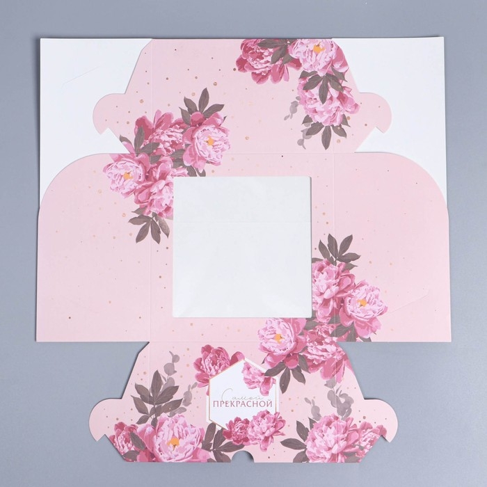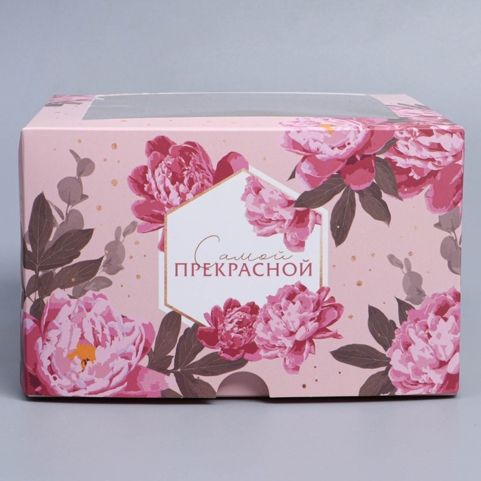 Коробка для капкейков, кондитерская упаковка с окном, 4 ячейки «Цветы», 16 х 16 х 10 см
