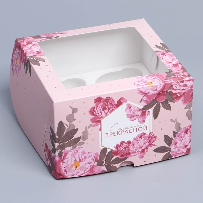 Коробка для капкейков, кондитерская упаковка, 4 ячейки «Для тебя», 16 х 16 х 7.5 см