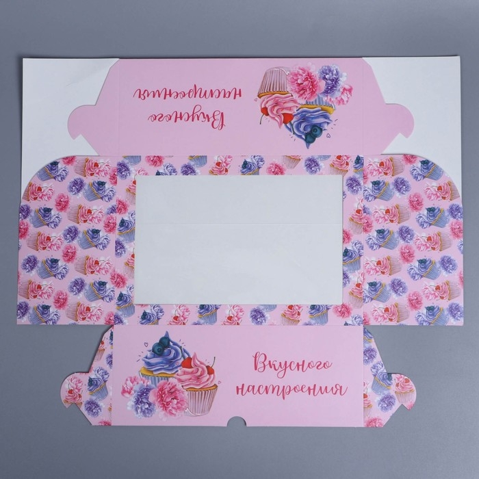 Коробка для капкейков, кондитерская упаковка с окном, 6 ячеек «Вкусного настроения», 25 х 17 х 10 см