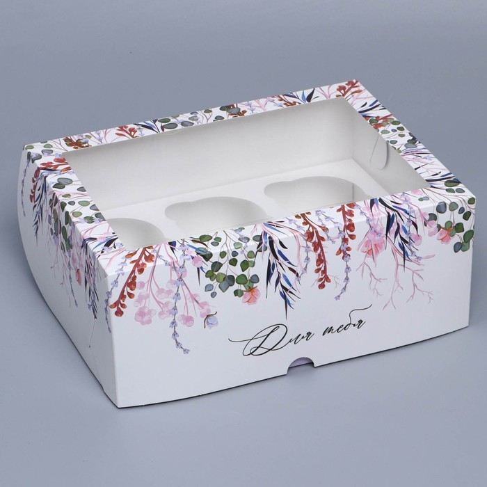 Коробка для капкейков, кондитерская упаковка с окном, 6 ячеек «Венок», 25 х 17 х 10 см