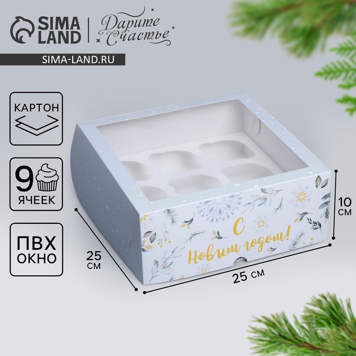 Коробка для капкейков «С Новым Годом» 16 х 16 х 10 см, Новый год