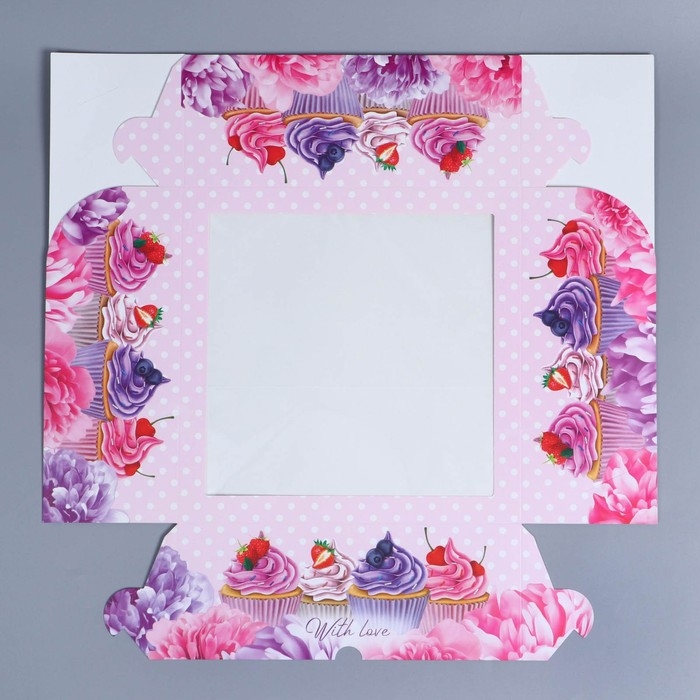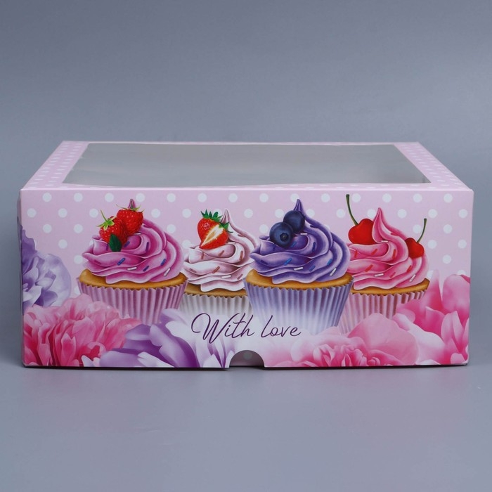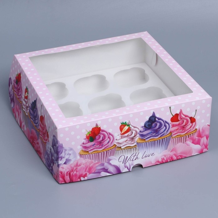 Коробка для капкейков, кондитерская упаковка с окном, 9 ячеек «Капкейки», 25 х 25 х 10 см