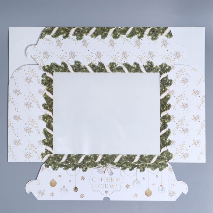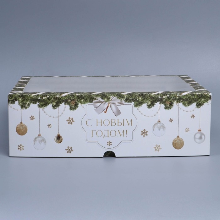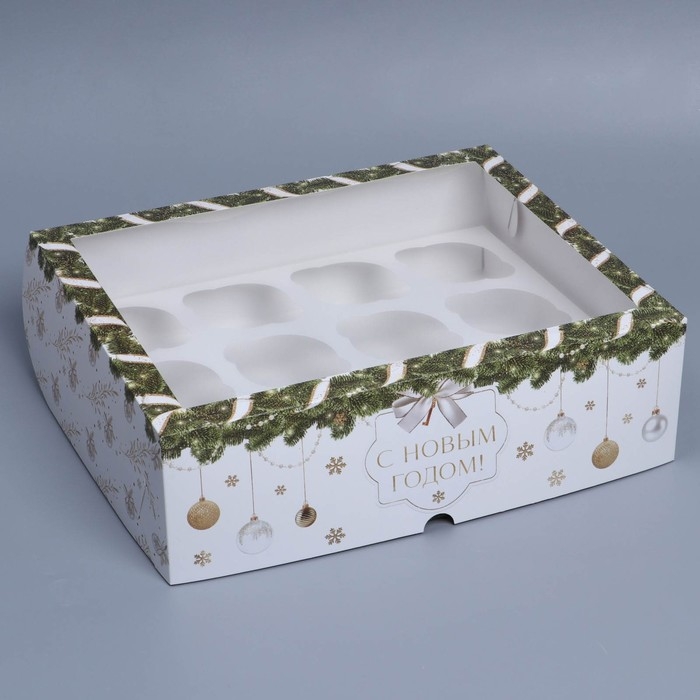 Коробка складная на 12 капкейков с окном «С Новым годом!» 32,8 х 25,6 х 10 см, Новый год