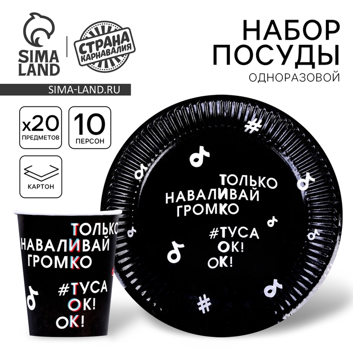 Набор бумажной посуды одноразовый Туса ок» 10 стаканов, 10 тарелок