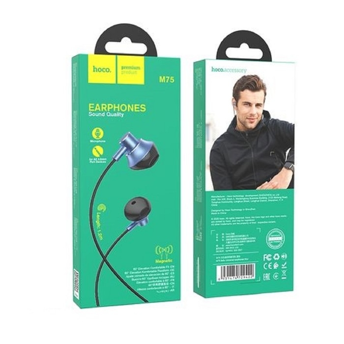 Наушники Hoco M75, проводные, вкладыши, микрофон, Jack 3.5 мм, 1.2 м, синие