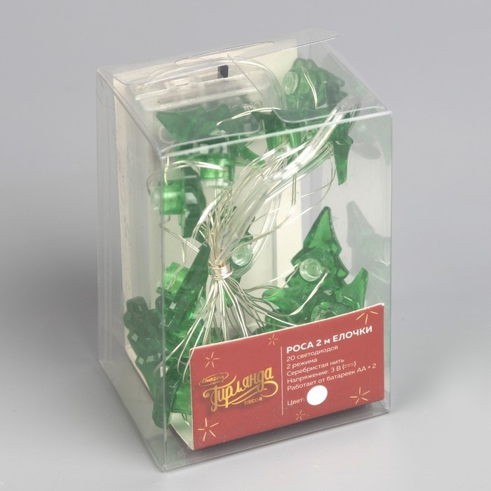 Гирлянда «Нить» 2 м роса с насадками «Ёлочка», IP20, серебристая нить, 20 LED, 2 режима, батарейки ААх2 (нет в комплекте), свечение белое
