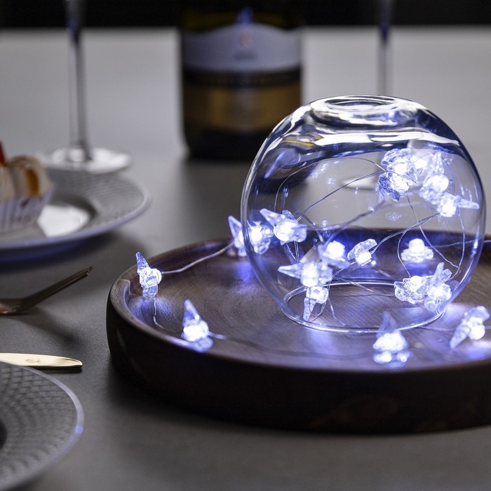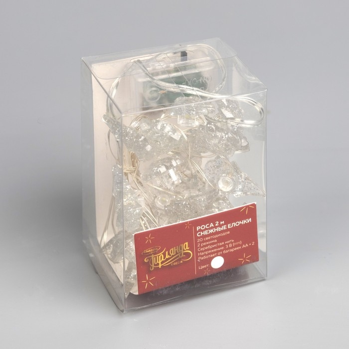 Гирлянда «Нить» 2 м роса с насадками «Снежная ёлочка», IP20, серебристая нить, 20 LED, 2 режима, батарейки ААх2 (нет в комплекте), свечение белое