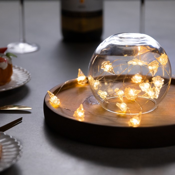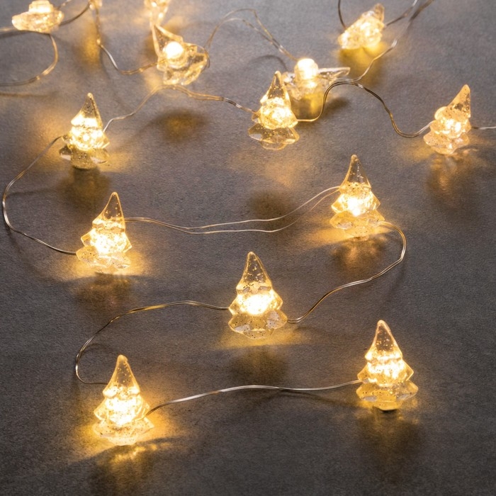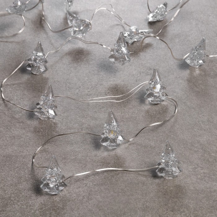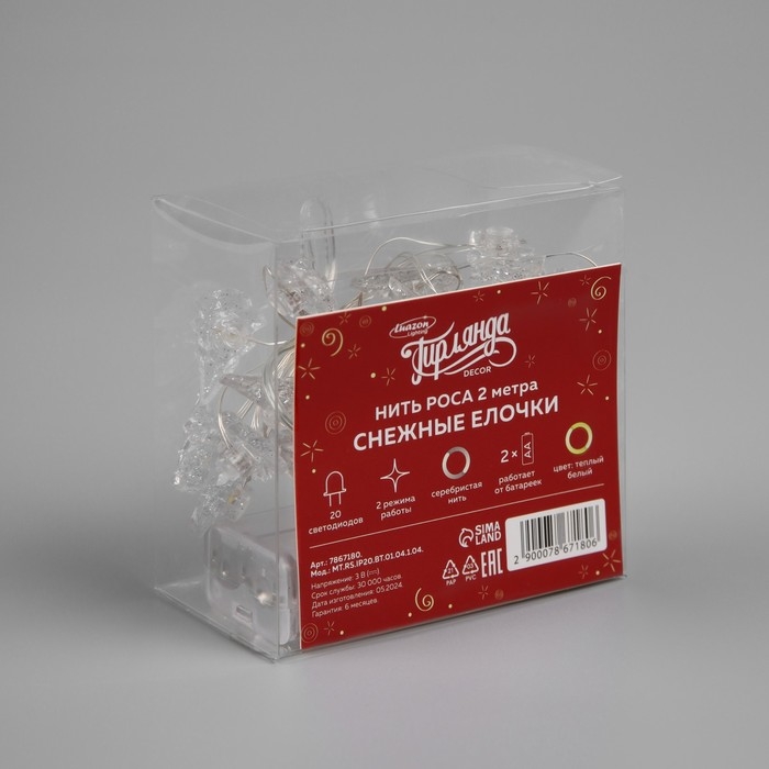 Гирлянда «Нить» 2 м роса с насадками «Снежная ёлочка», IP20, серебристая нить, 20 LED, 2 режима, батарейки ААх2 (нет в комплекте), свечение тёплое белое