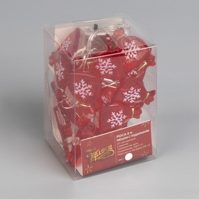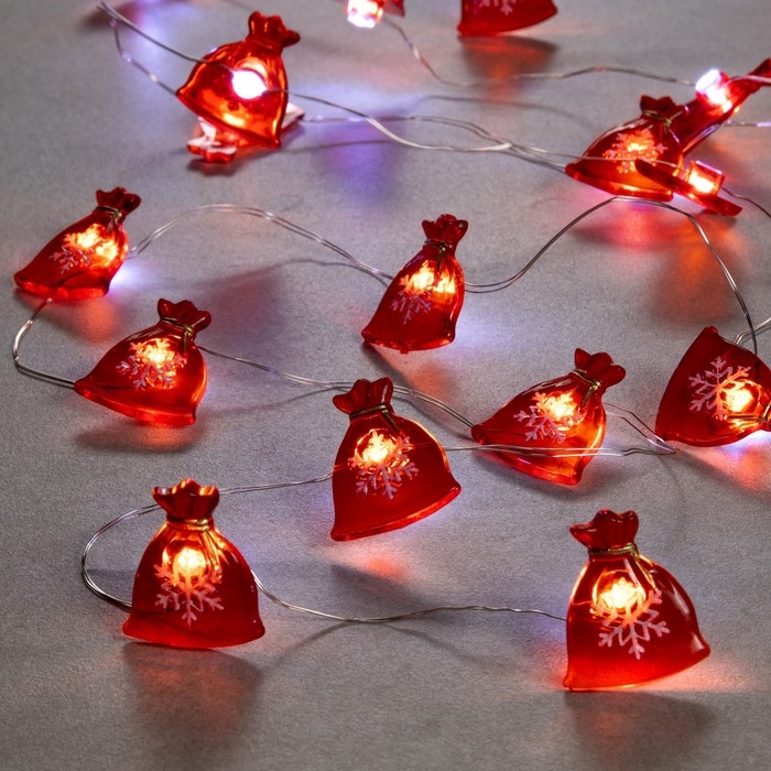 Гирлянда «Нить» 2 м роса с насадками «Мешок с подарками», IP20, серебристая нить, 20 LED, 2 режима, батарейки ААх2 (нет в комплекте), свечение белое