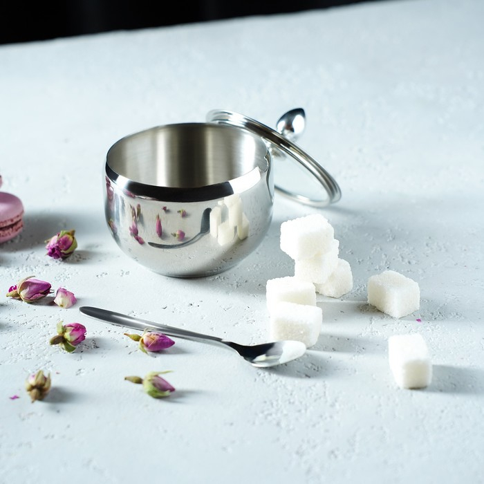 Сахарница из нержавеющей стали является незаменимым элементом сервировки стола. Данное изделие подойдёт как для чаепития в кругу друзей и близких, так и для делового ланча.