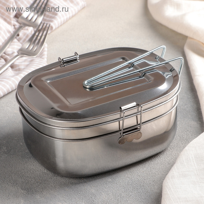 Контейнер для еды из нержавеющей стали с держателем, 17×13, 2 уровня