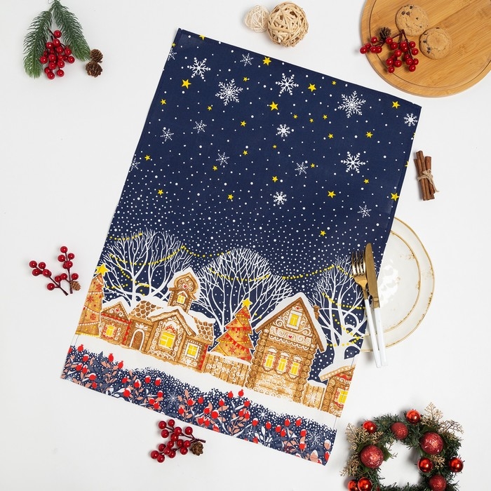 Полотенце новогоднее DomoVita «Полночь», рогожка 170г/м², размер 50х70 см 100% хлопок