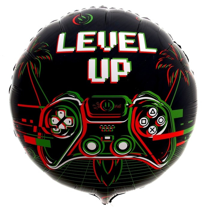 Фольгированный шар в виде круга с надписью: «Level up» подойдёт в качестве дополнения к подарку для настоящего любителя компьютерных игр! Несколькими шарами можно оформить помещение или фотозону для праздника.