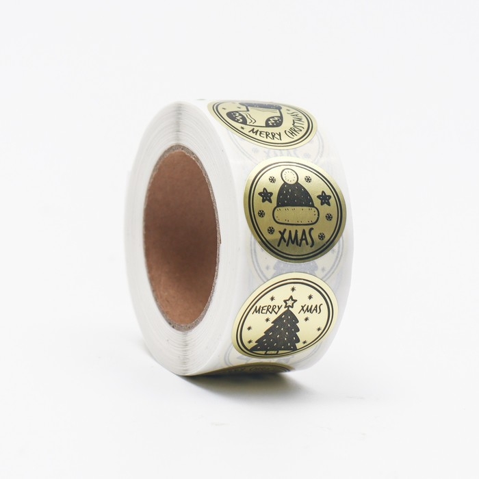 Новый год. Наклейки с тиснением в рулоне "Mary Christmas", 500 шт,2,5 х 2,5 см