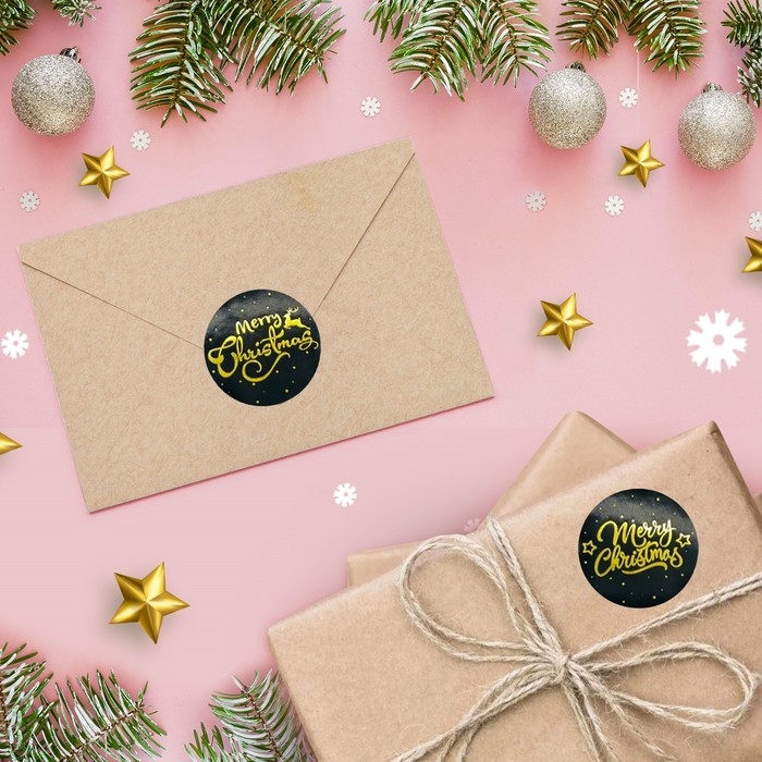 Новый год. Наклейки c тиснением в рулоне "С Рождеством!", 500 шт, 2,5 х 2,5 см