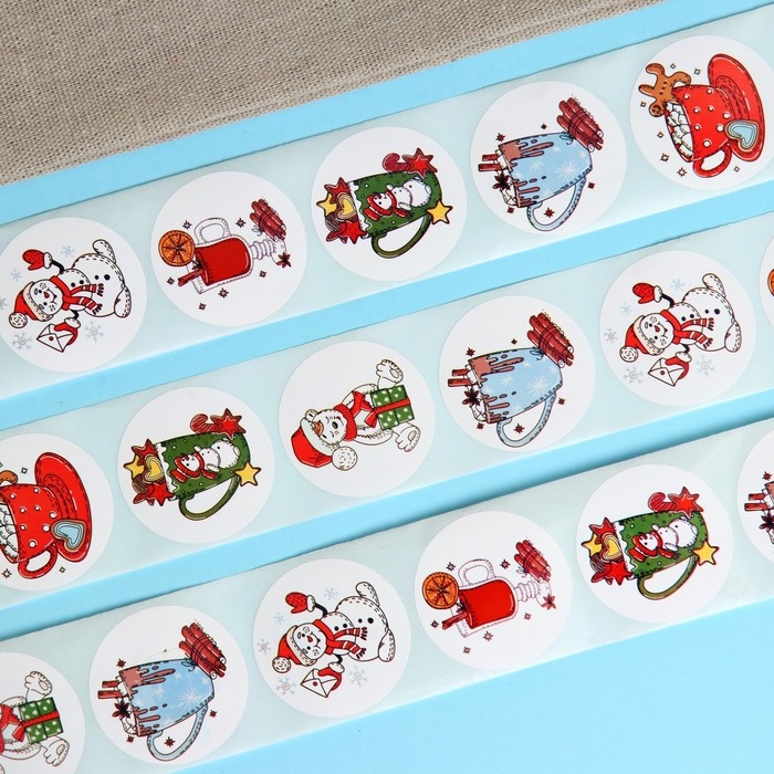 Новый год. Наклейки в рулоне "Новогодние угощения", 500 шт, 3,8 х 3,8 см