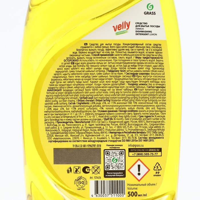 Средство для мытья посуды Velly, Лимон 500 мл