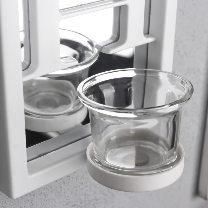 Подсвечник пластик, стекло на 1 свечу "Отражение веры" d-4 см белая 8х12х41 см
