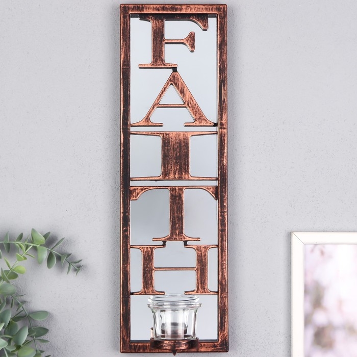 Подсвечник пластик, стекло на 1 свечу "Отражение веры" d-4 см стар. бронза 8х12х41 см