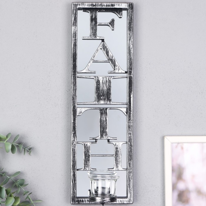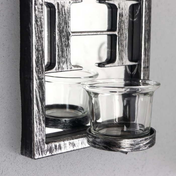 Подсвечник пластик, стекло на 1 свечу "Отражение веры" d-4 см стар. серебро 8х12х41 см