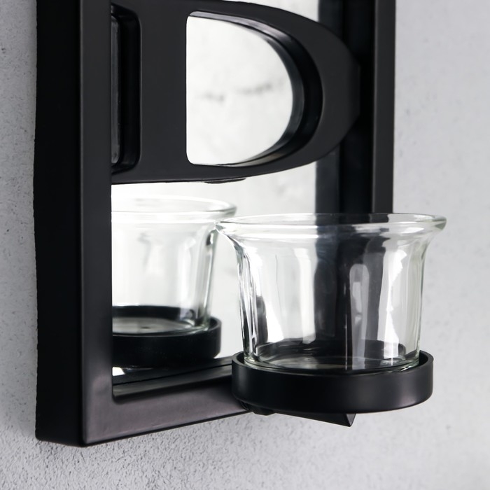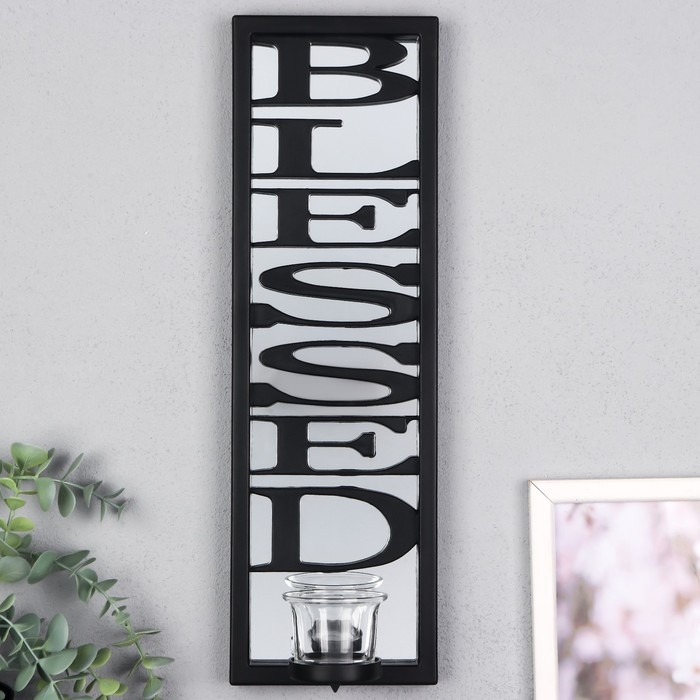 Подсвечник пластик, стекло на 1 свечу "Отражение благословения" d-4 см чёрная 8х12х41 см