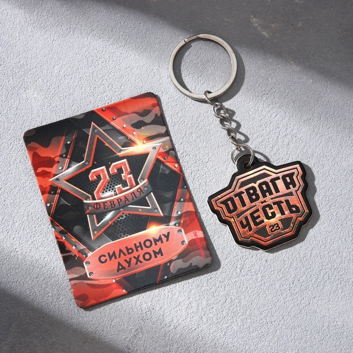Магнит и брелок на 23 Февраля «Отвага и честь», подарочный набор : 2 предмета