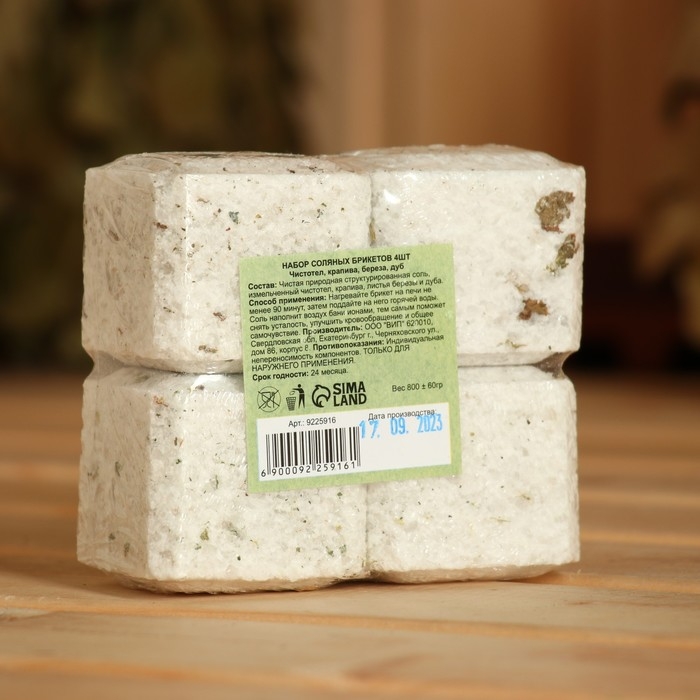 Соляной брикет набор 4 шт "Чистотел, крапива, береза, дуб" по 200 гр "Добропаровъ"