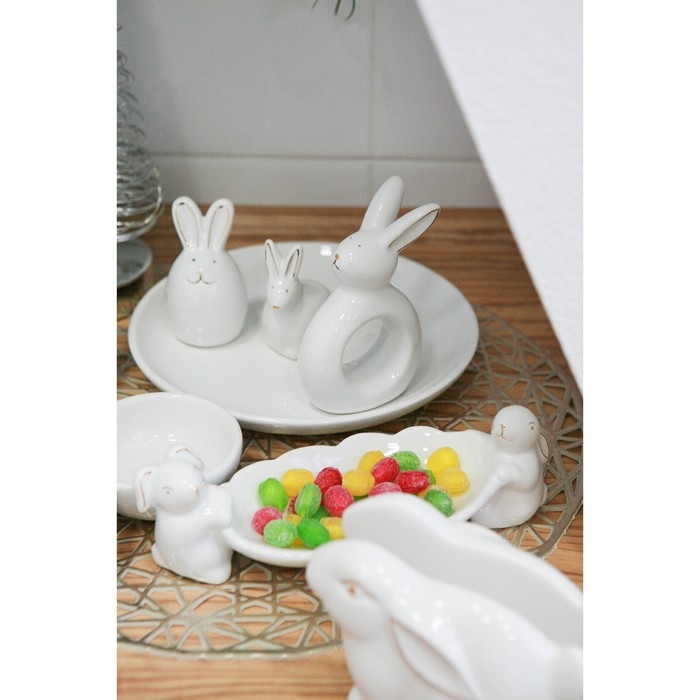 Кольцо для салфеток Доляна «Зайка в золотом», 7,5×3,5×11,5 см, цвет белый