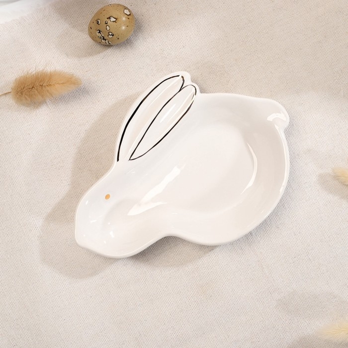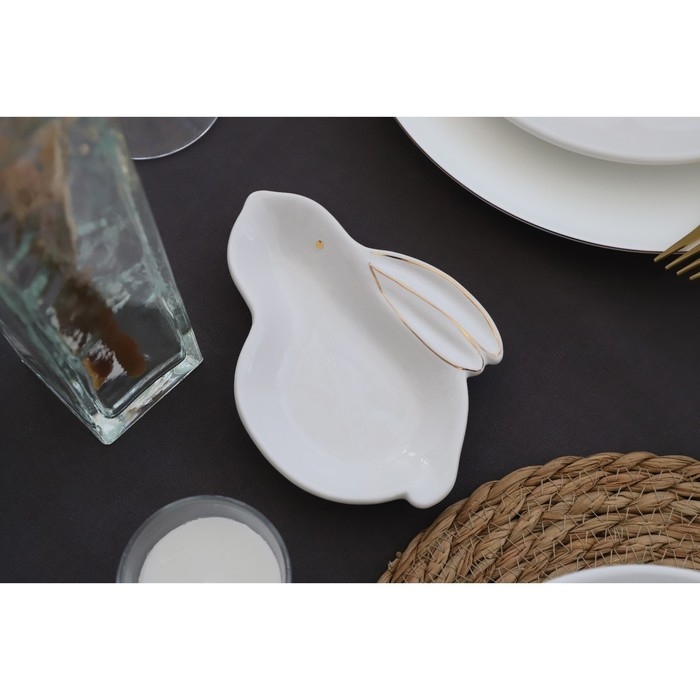 Блюдо Доляна «Зайка в золотом», 15,5×11×2,5 см, цвет белый