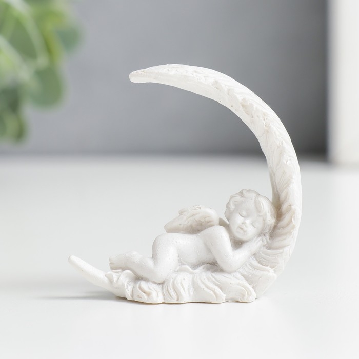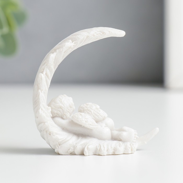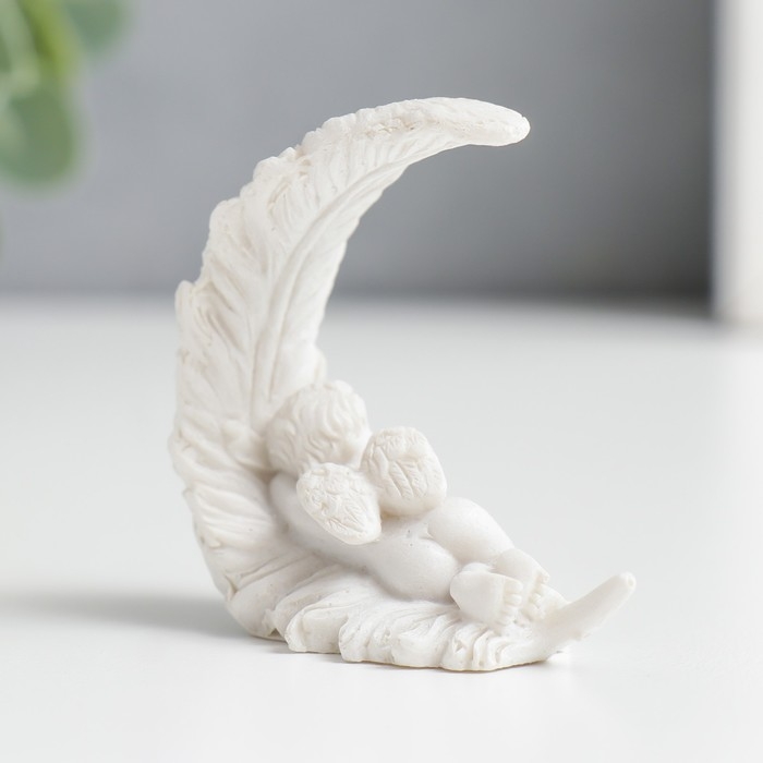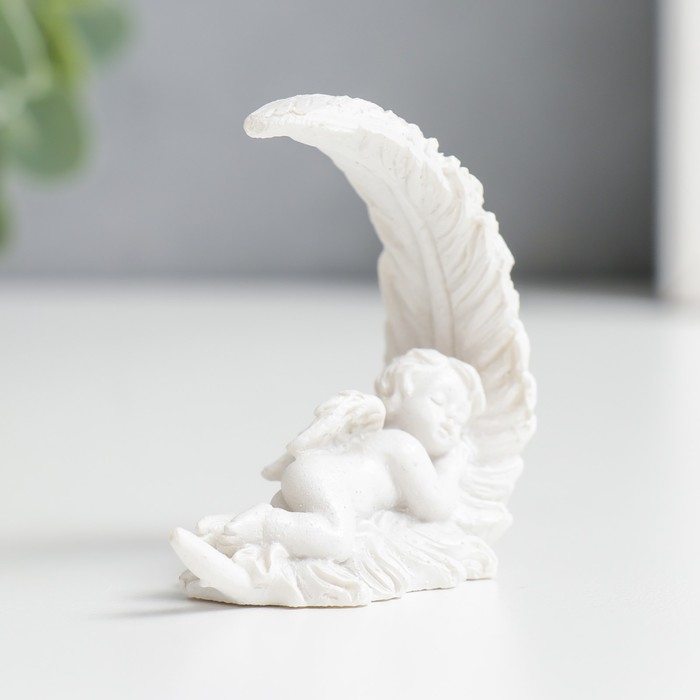 Сувенир полистоун "Спящий белоснежный ангел на пёрышке" 5,2х4,5х2,6 см