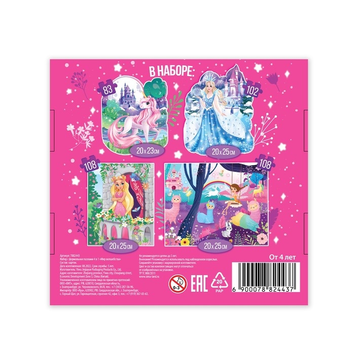 Набор с фигурными пазлами 4 в 1 «Мир волшебства», от 83 до 108 деталей
