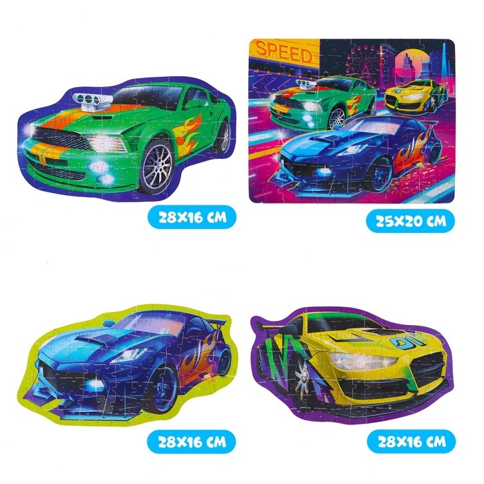 Набор с фигурными пазлами 4 в 1 «Ночные гонки»