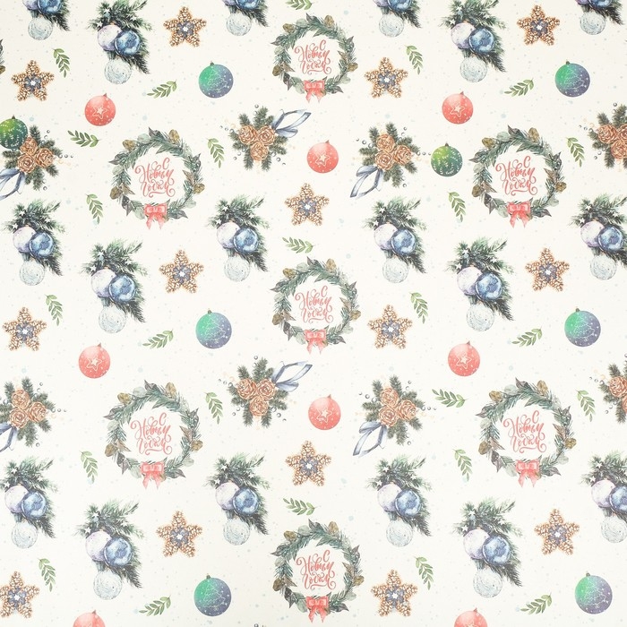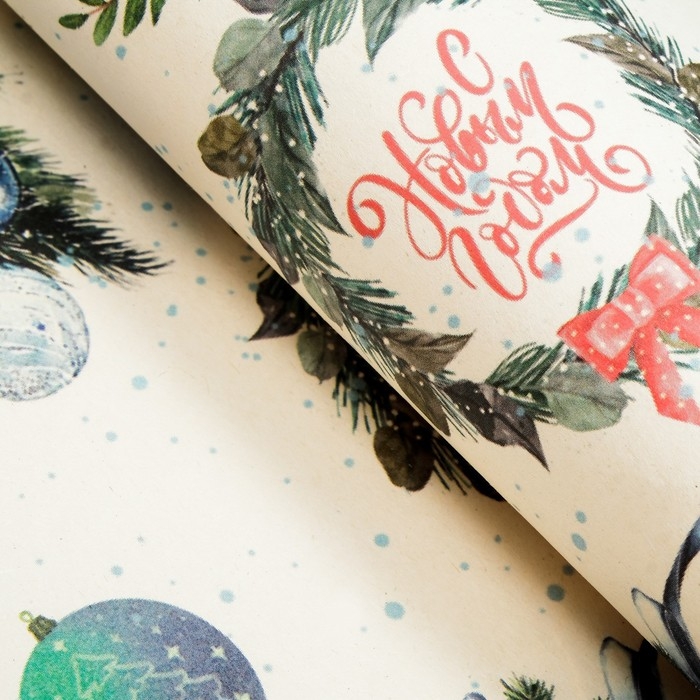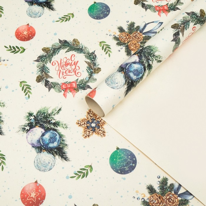 Новый год. Бумага упаковочная крафт "Венки",1 лист , 70 х 100 см