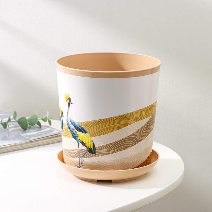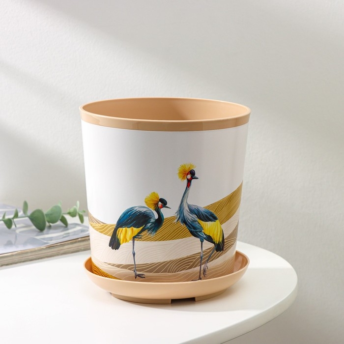 Горшок для цветов с поддоном Доляна «Каракум. Венценосный журавль», 1,6 л, d=14 см, h=15,5 см, цвет бежевый