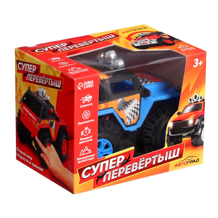 Машинка-перевертыш — это транспорт, спроектированный так, что он может продолжать движение даже после того, как перевернётся. Большие колёса помогают игрушке преодолевать небольшие препятствия. Если она упрётся в стену, то просто перевернётся и продолжит ехать дальше.