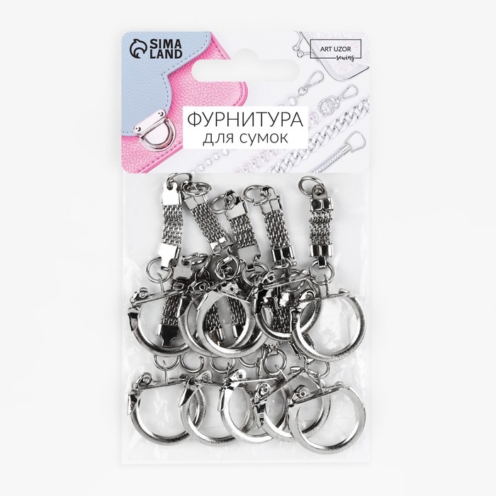 Основа для брелока, с плоской цепочкой, d = 23 мм, 6,2 см, 10 шт, цвет серебряный