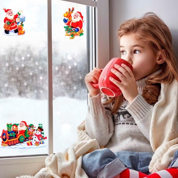 Наклейки на окна "Новогодние" Дед Мороз, поезд, 41 х 29 см