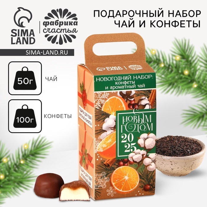 Подарочный набор новогодний «С новым годом 2025»: чай, конфеты
