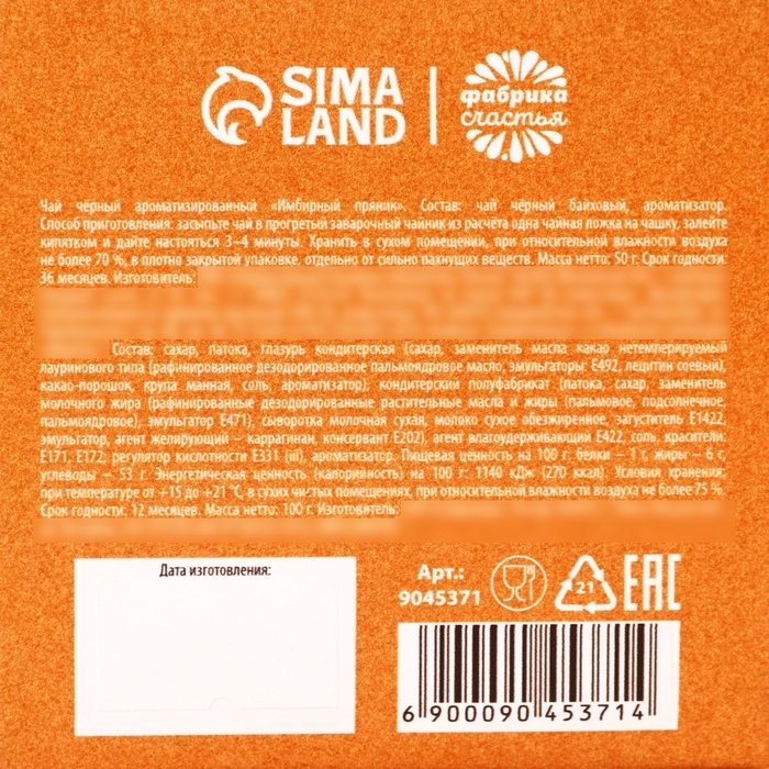 Состав: чай чёрный байховый, ароматизатор.
