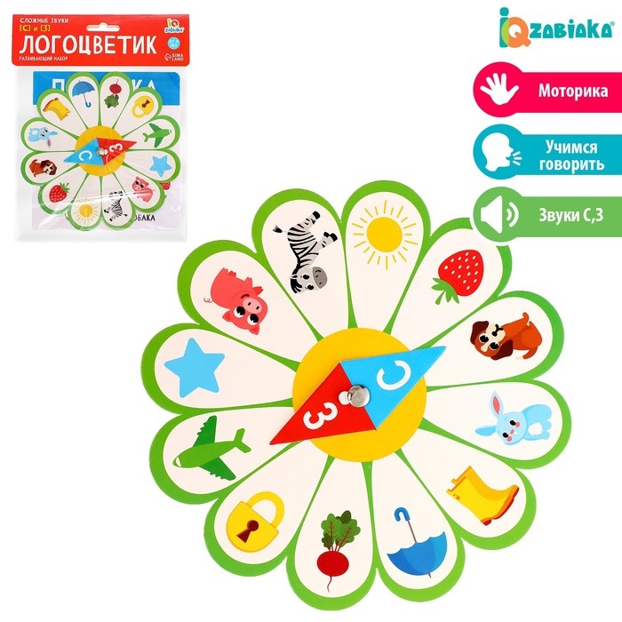 Развивающий набор «Логоцветик» поможет ребёнку подготовиться к школе, расширить словарный запас и потренировать произношение сложных звуков С и З.