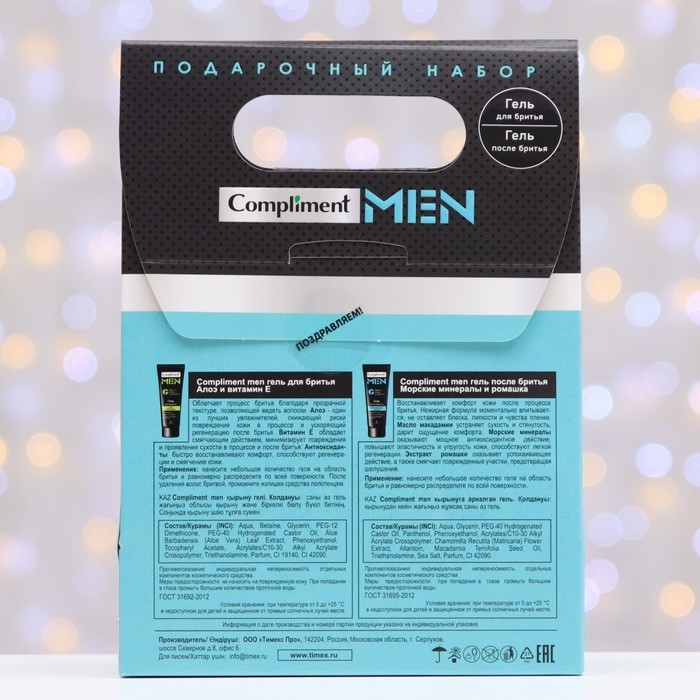 Набор подарочный Compliment 2 предмета: гель для бритья 80 мл + гель после бритья 80 мл