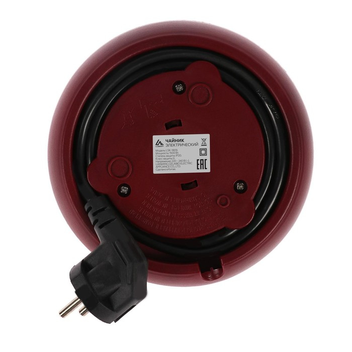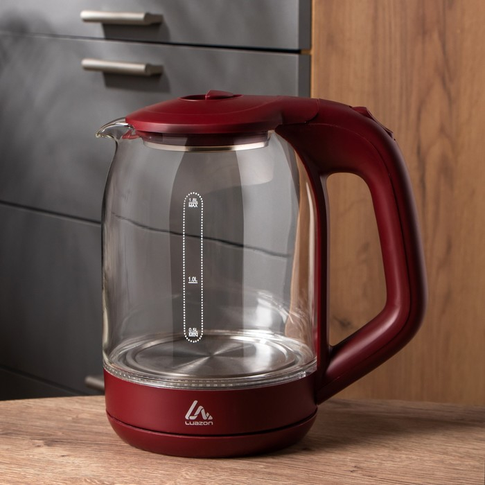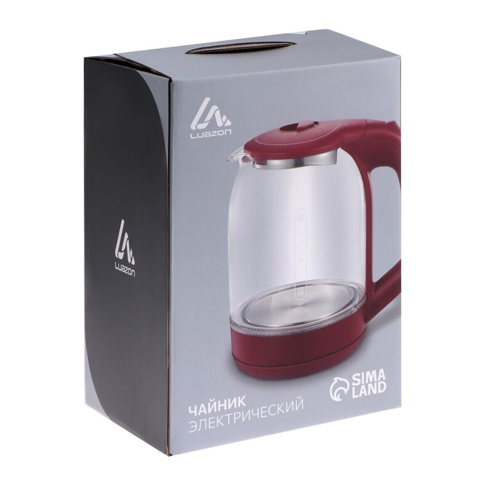Чайник электрический Luazon LSK-1809, стекло, 1.8 л, 1500 Вт, подсветка, красный